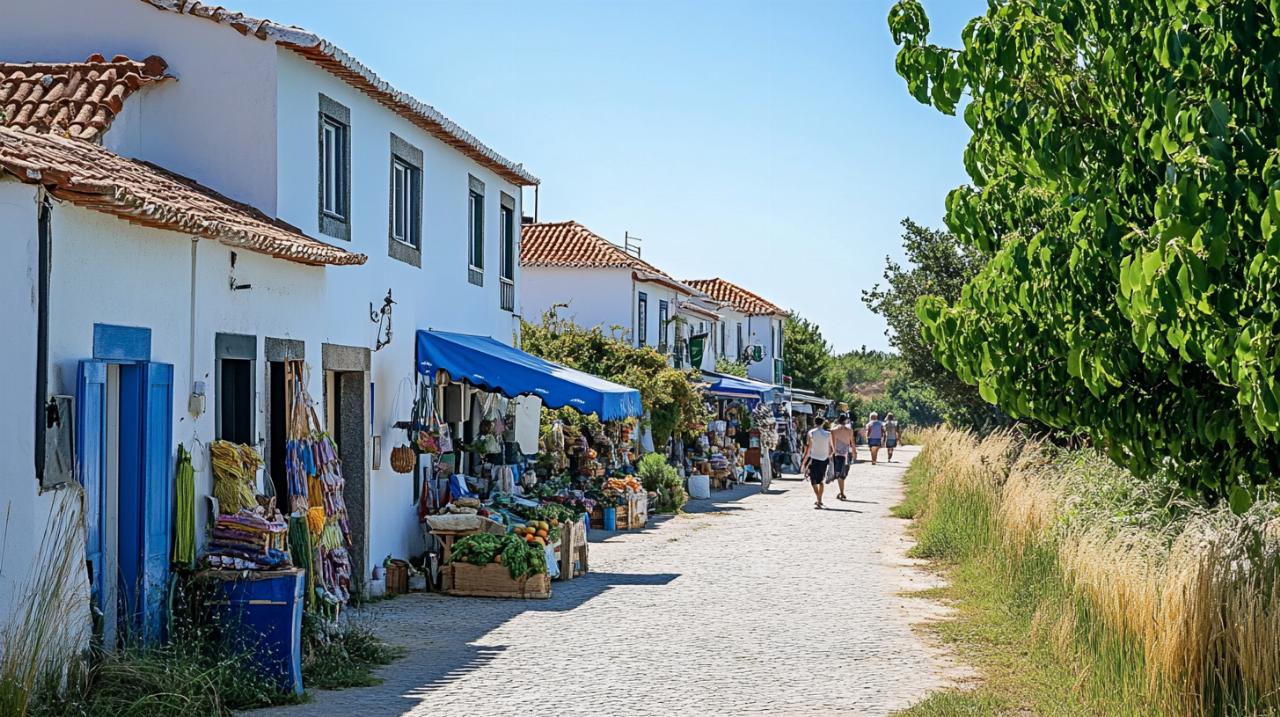 Pasear por el pueblo de Comporta supone sumergirse en un ambiente donde el tiempo parece transcurrir a otro ritmo. Las tiendas de decoración, como la conocida Lavanda, exhiben piezas de artesanía local, textiles tradicionales y objetos de diseño que combinan modernidad con técnicas ancestrales. Los puestos de carretera que aparecen de manera informal ofrecen antigüedades y objetos curiosos que hablan de la historia rural de la región. El mercado de Alcácer do Sal, localidad cercana accesible en tren desde Lisboa, permite descubrir productos típicos como el queso de oveja curado, que se vende directamente por los productores locales. Portugal destaca como el primer exportador mundial de corcho, y en esta zona es posible apreciar la importancia de este material tanto en la industria como en la artesanía. Recorrer estas calles empedradas, explorar los pequeños comercios y conversar con los habitantes locales forma parte esencial de la experiencia, permitiendo comprender la identidad de un lugar que mantiene vivas sus tradiciones mientras acoge con calidez a quienes llegan buscando autenticidad.
